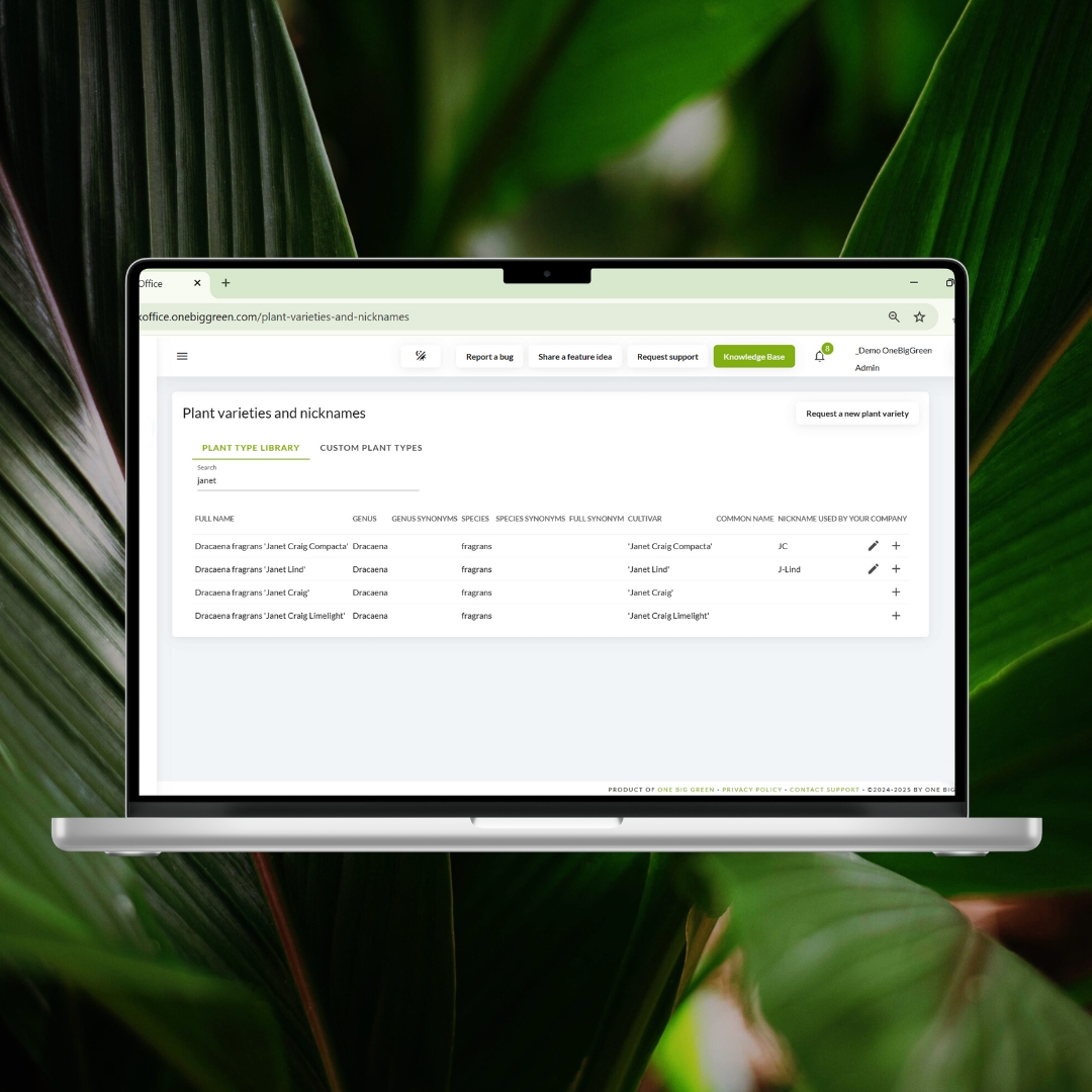 Add your own nicknames or create custom types like “succulent mix” or “bromeliad mix,” so your team’s language stays familiar while the system ensures consistency.