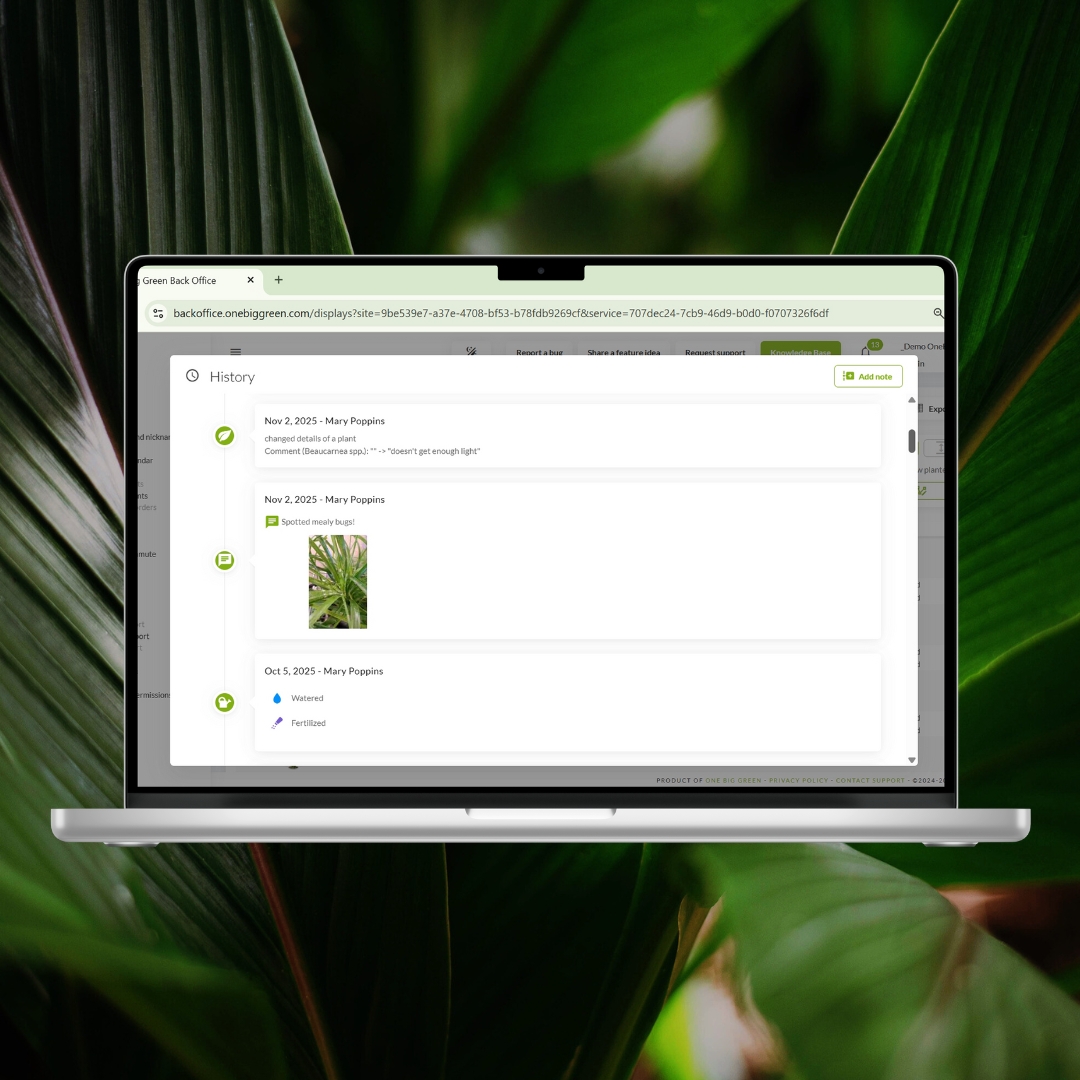Whether you’re managing hundreds of indoor displays or large-scale exterior sites, you’ll know exactly what’s planted, where, when it was serviced, and who’s responsible.