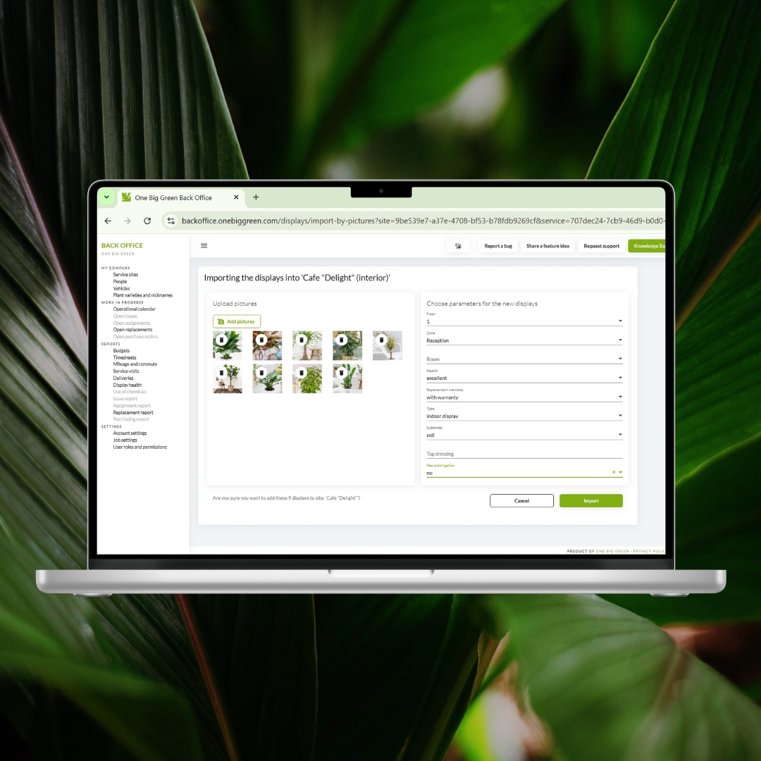 Import plant data from spreadsheets or even just photos, and add inventories instantly with the One Big Green field app.