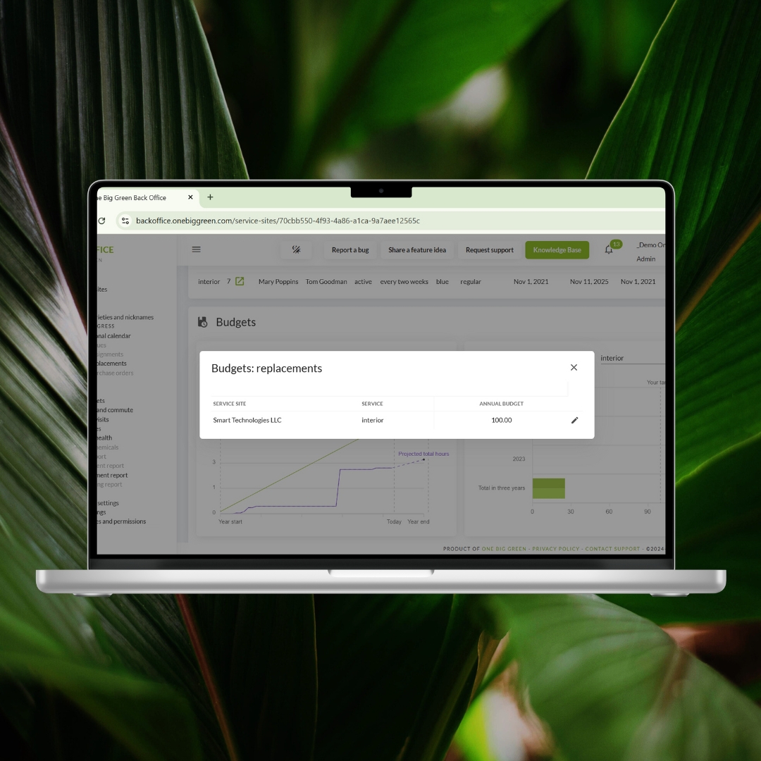 Built specifically for interiorscapers and plant maintenance businesses, this isn’t just about spreadsheets. It’s about clarity. With real-time cost tracking for field operations, you’ll instantly see which accounts are thriving, which need adjustment, and where you can improve margins - without ever leaving your dashboard.