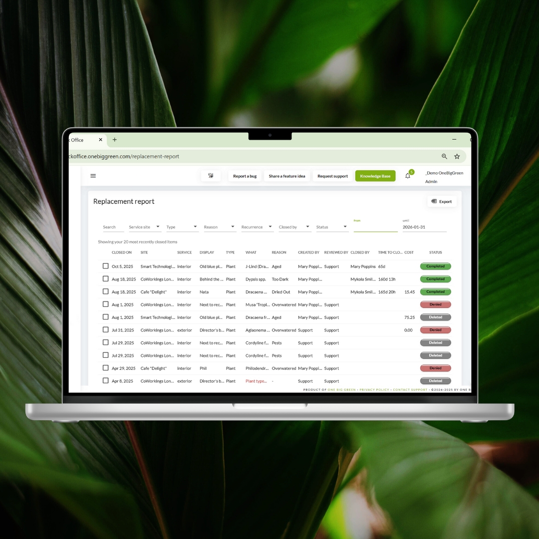 Each ticket is tracked through completion, providing full transparency from request to approval. It’s the ticketing system for plant replacements that keeps your workflow organized and efficient.